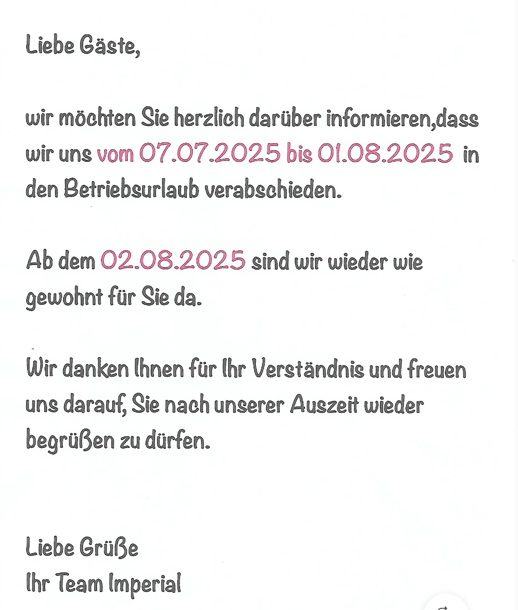 Auf Ihren Besuch freut sich das Imperial Team